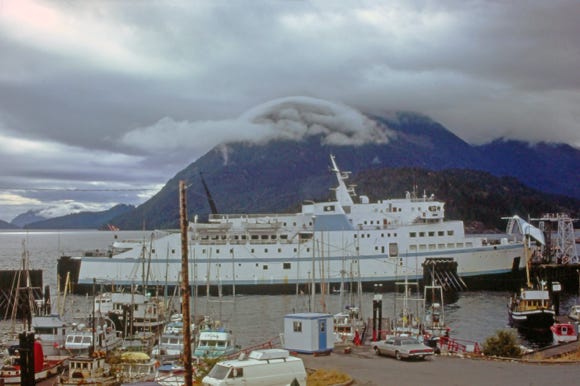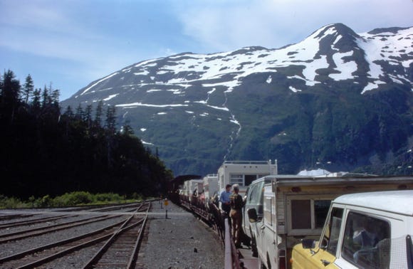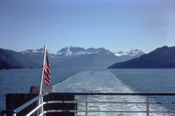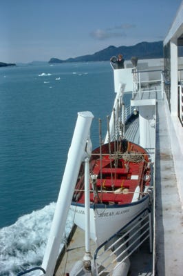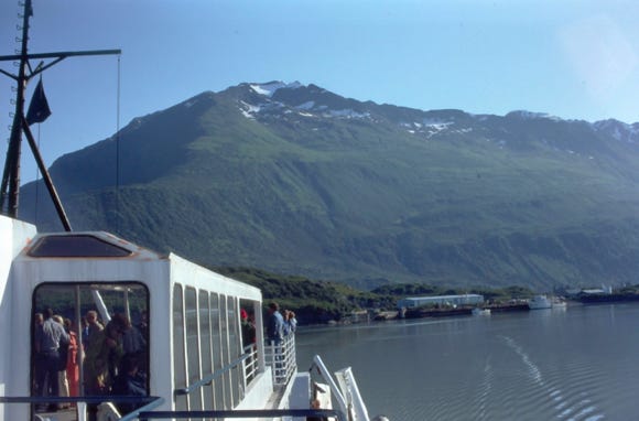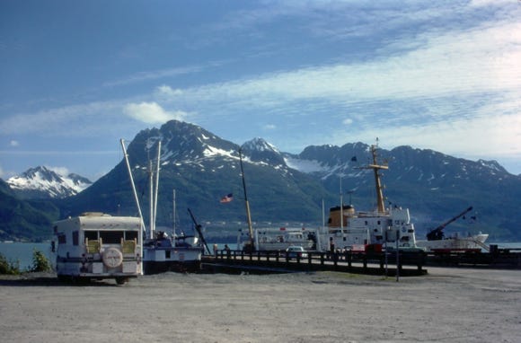 You can see the RV’s driving into the lower deck on the MV Bartlett ferry for the trip through the Prince William Sound to the Columbia Glacier and Whitter. The cost of this trip was $97.00 for the 19-foot Lazy Daze.