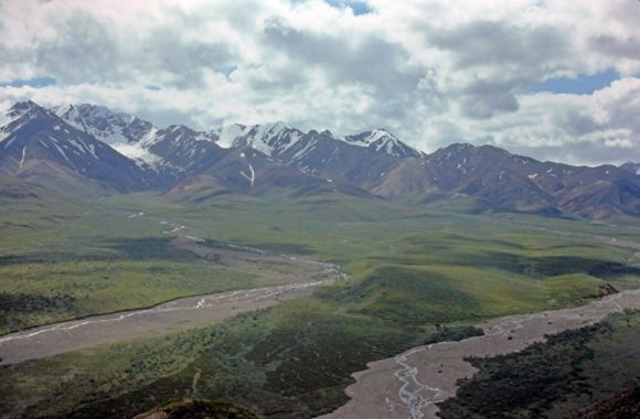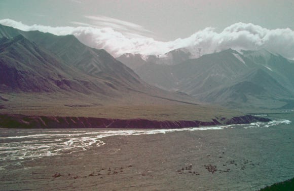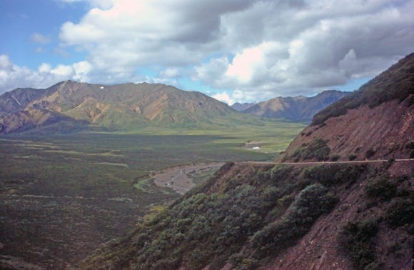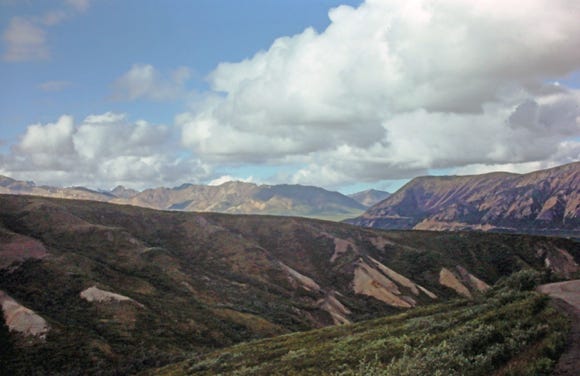 The next day we got on the bus tour to Denali; it was cloudy and cold with some rain. Denali is six million acres of wild land, bisected by a one-lane road. This is North America’s tallest peak at 20,310 feet in elevation.