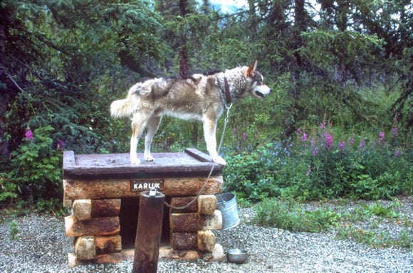 The campground was full, but we saw another Lazy Daze parked in a site, and they invited us to park next to them in the site for the night. The next morning we toured the Denali’s Alaskan huskies and saw the demonstration by the park ranger. Denali is the only national park with a kennel of sled dogs.