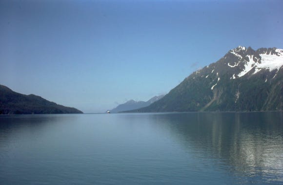 Cruising along Prince William Sound to the Columbia Glacier was spectacular. We were fortunate to have a sunny day without wind or clouds. You can see the photos of the scenery as we approach the Columbia Glacier. The Columbia Glacier is the second-largest tidewater glacier in North America and the largest in Prince William Sound, at over 700 feet thick.