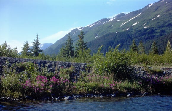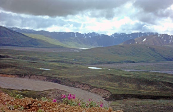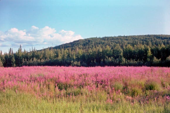 Leaving Soldotna we pass fireweed along the highway as we go to Anchorage and then to Mt. McKinely now officially renamed to its original name of Denali by the native Alaskans in their Athabascan language.