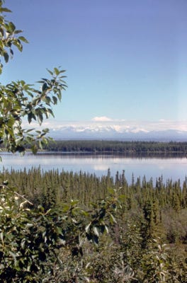 We drove to Tok River Bridge campground, and a view of Island Lake, arriving at 10:00 PM, and it was still light outside!