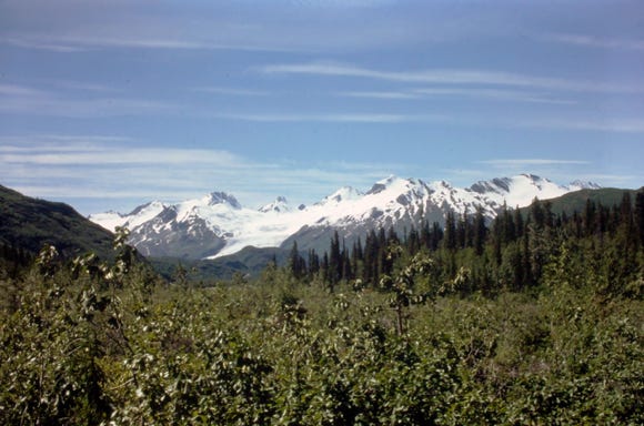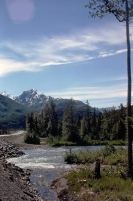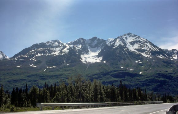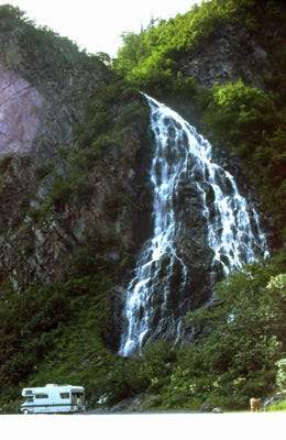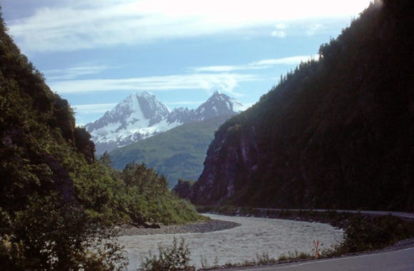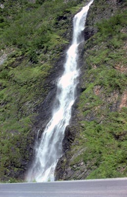 As we drive south along the Richardson Highway to Valdez, we pass the Chugach mountain range which is called “Little Switzerland Of America”, and another mountain range called Billy Mitchell and the Tiekel River. We arrive at the Worthington Glacier and then pass the Bridal Veil Falls in Keystone Canyon at MP 13, and then see the Horsetail Falls in Keystone Canyon.