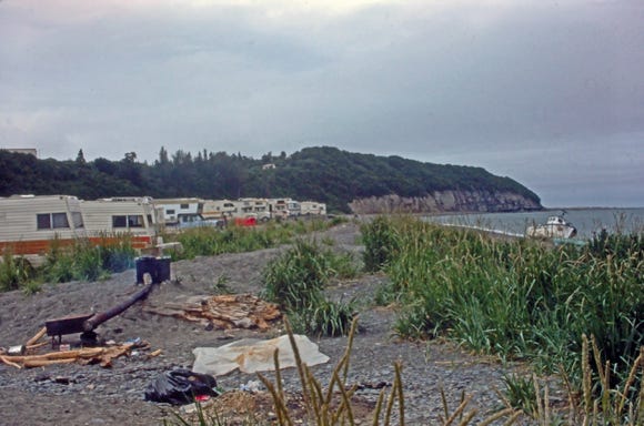 We are now heading for Homer and Land’s End and the Salty Dog Saloon; we camped on the spit at Homer for the night. Remember that we said that we were at “Land’s End,” at the southern point of the Baja Highway, well we made it to the world-famous Homer spit that is a 4.5-mile-long gravel bar road into the ocean waters in Alaska.