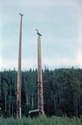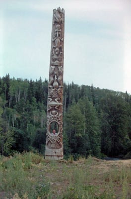 On August, 4th we had road construction for 22 miles and it took over 2 hours to get to Kitwancool to see some of the oldest-known and largest collection of totem poles in British Columbia, many over 100 years old. Many of these totems have been moved to the Royal British Columbia Museum in Victoria, but the “Hole In The Ice,” remains in Kitwancool.