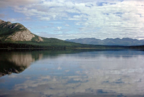 The next morning we drove to Carmacks and spent the night and leaving we are now on Highway 9 (Robert Campbell Highway). Arriving at Frances Lake we fished the Hoole River and caught five grayling using a yellow wobbler.