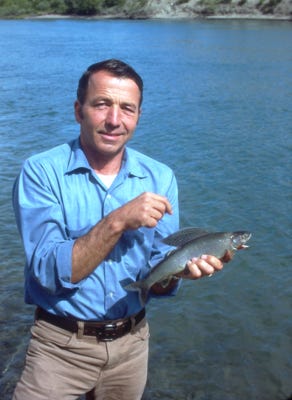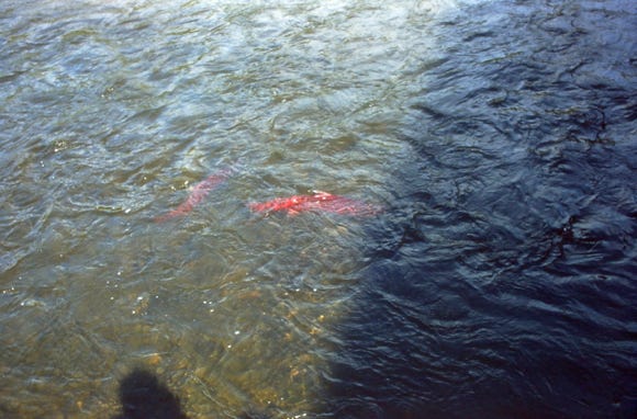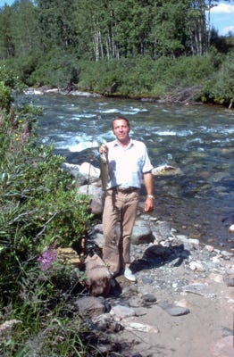 Arriving at Steward, we found a great restaurant to eat at and then drove around town and spent the night. The next morning we drove to the Russian River and found that all of the 100 campsites were full. We camped in the parking lot, and we hiked down to the Russian River where Bill caught a 6-pound salmon with a red and white wobbler.