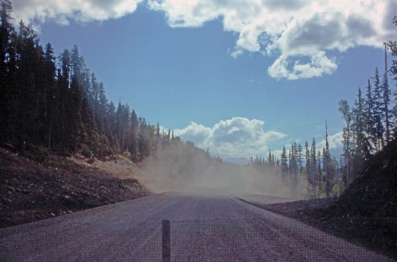 This was a mistake, as you can see by the construction zone that we had to drive on for over 80 miles from Prince George to Dawson Creek, also known as the John Hart Peace River Highway. Luckily, we did not have any damage to the windshield or headlights as most of the drivers kept their distance and were driving slowly.
