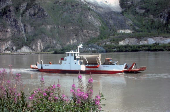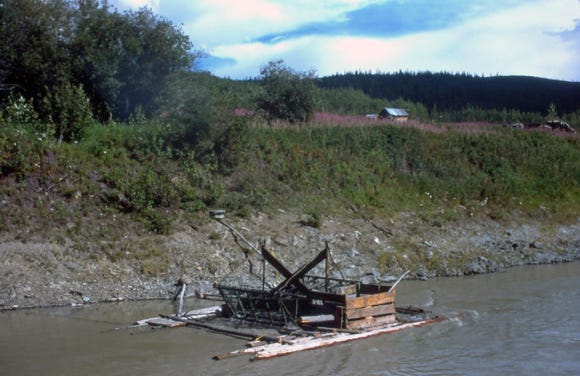 Leaving Dawson City on Highway 2 (Klondike Hwy) we approach a very narrow wooden bridge going over the Ketza River at MP 212. The Ketza River Mine was opened in 1988 for gold and silver mining and produced over 300,000 metric tons of gold. The Ketza mine owned by Veris Gold was abandoned in 2015, and now the government has a remediation plan to be completed in 2022 to clean up the pollution from the mine.