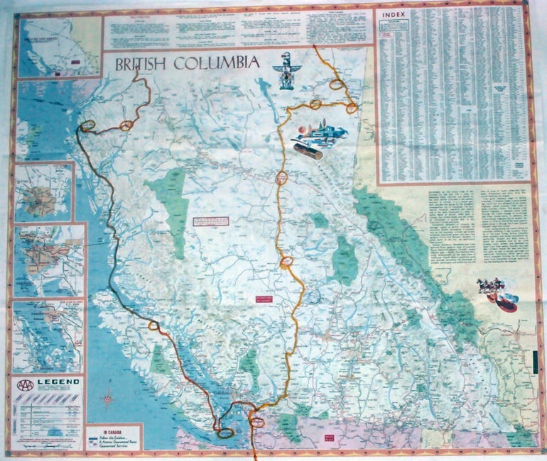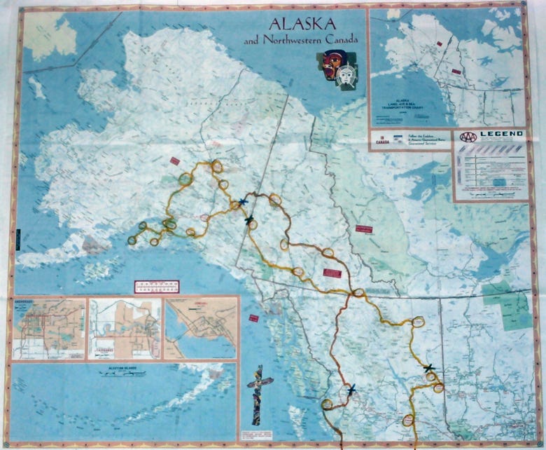 The Above Maps Shows Our Route From British Columbia To The Yukon Territory To Alaska. This Was A 8,000 Mile Trip.