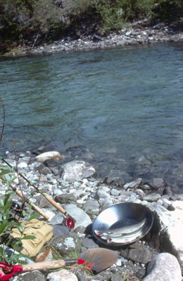 We stopped at Bonanza Creek a small tributary of the Klondike River to pan for gold, a local was charging $2.50 per pan so we thought why not try our luck? As you can see we did not get any gold but caught two nice grayling on the river. We left and drove to Moose Creek and arrived at 9:00 PM.