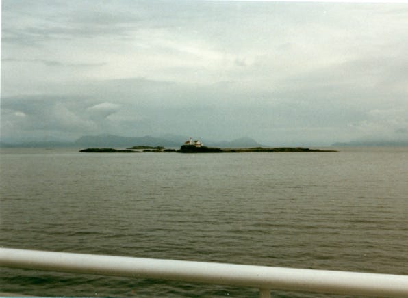 The photo is of “Three Island Lighthouse,” completely automated, it is located in the Chatham Sound between Prince Rupert and Ketchikan.
