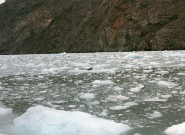 As we boated to more glaciers we came across Riggs Glacier. You can see the harsh beauty of a land just released from the ice. No trees, or bushes, just the brilliance of the grey and browns of a dead land. But, less than 100 years from now it will be a thick forest of alder, cottonwood, and spruce as the ice recedes.