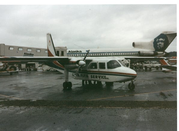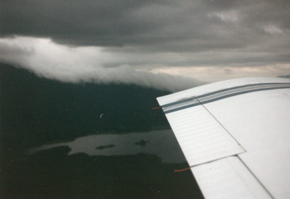 Our trip to Glacier Bay was specular, the weather was cloudy with some rain but we saw a lot and took many photos. As we were waiting at Gustavus to board the two-engine plane back to Juneau, we saw the large plane from Alaska Airlines and thought that we were going to take that plane back to Juneau but that was not the case. As we waited in line to board our plane another pilot came to us and said that he would be flying us back. He was much older a “seasoned pilot,” and we were okay with this.
