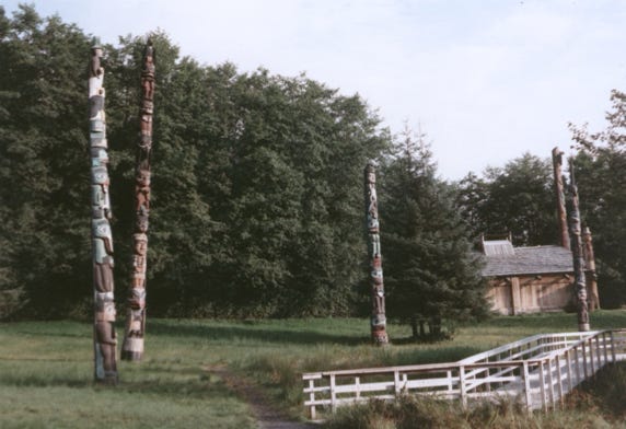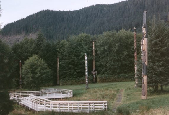 The park has a collection of totem poles of the Haida and Tsimshian Indians.