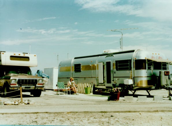After we retired in 1980 we made our winter home base at Desert Shores, California at Marina Mobile Estates. This was a resort community established back in the ‘50s, and the marina constructed jetties out into the Salton Sea. Over the years people bought manufactured homes and RV’s and had them on their site that they rented by the month or year.