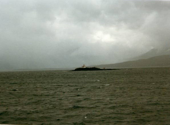 A photo of Eldrid Rock Lighthouse, the last manned lighthouse in Southeast Alaska. Approaching Meade Glacier along the Lynn Canal heading north to Haines.