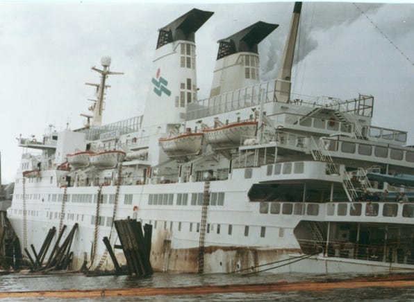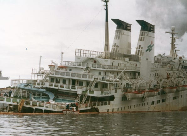 There were 800 passengers, and crew who had to be evacuated from the 12,000-ton ship. We heard that the ship was later declared a total loss.