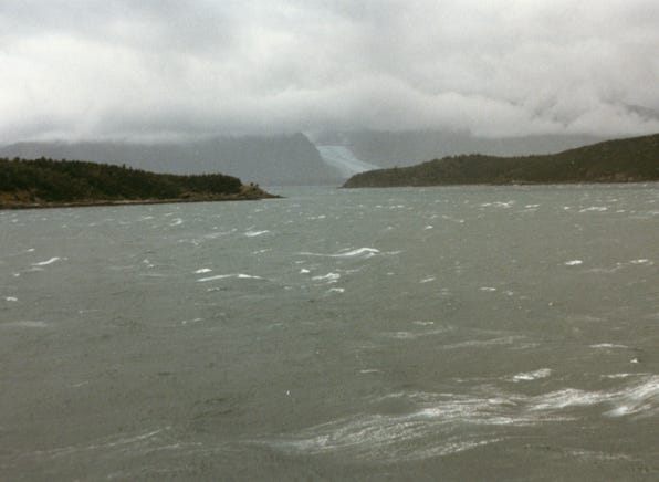 Another stormy day and you can see Rainbow Glacier along the Chilkat Inlet and rough seas.