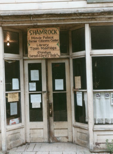 The photo of Tenakee Springs “Town Center,” is called Shamrock it is their movie palace, senior citizens center, library, town meeting hall, and shindigs.