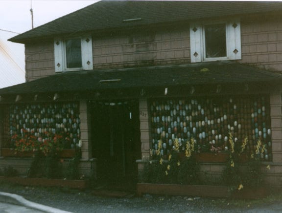 Photos of Wrangell and the waterfront area with homes on stilts. This was a unique home with fishnet floats as a decoration.