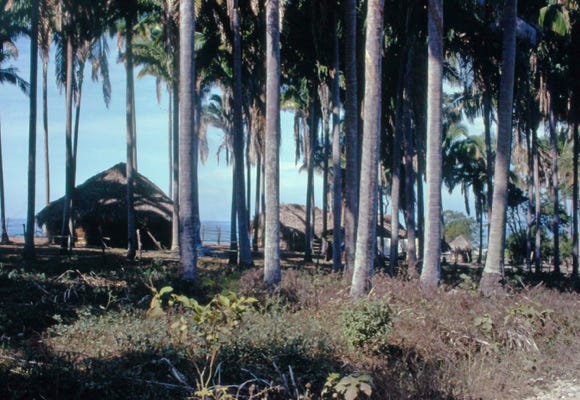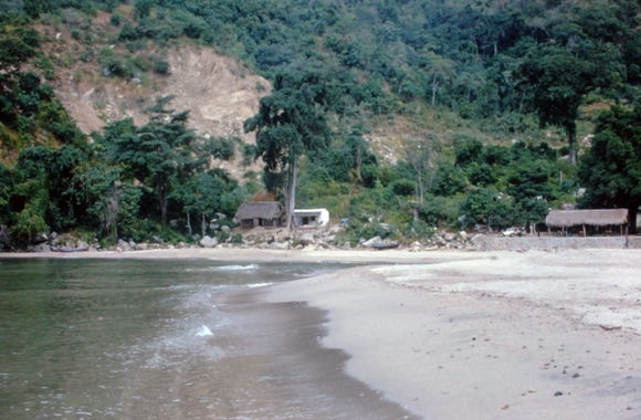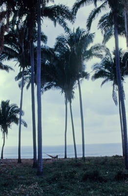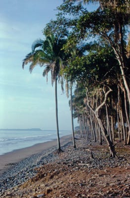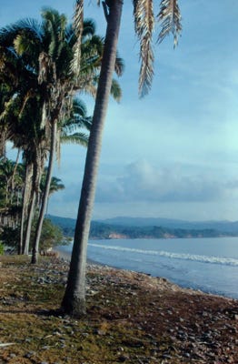 Leaving San Blas we drove south on the road to Santa Cruz, the road we took was a dirt road at the time (1969) and we entered a beautiful beach called Playa Los Cocos. It is bordered by a large coconut palm grove; the beach extends north to Playa Matanchen and Playa Las Islitas.