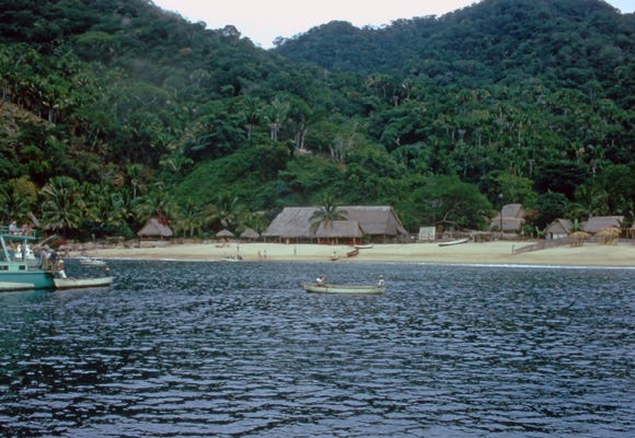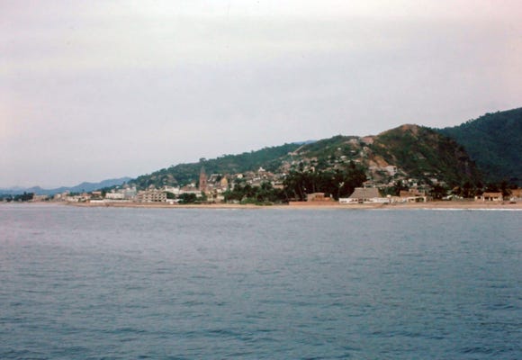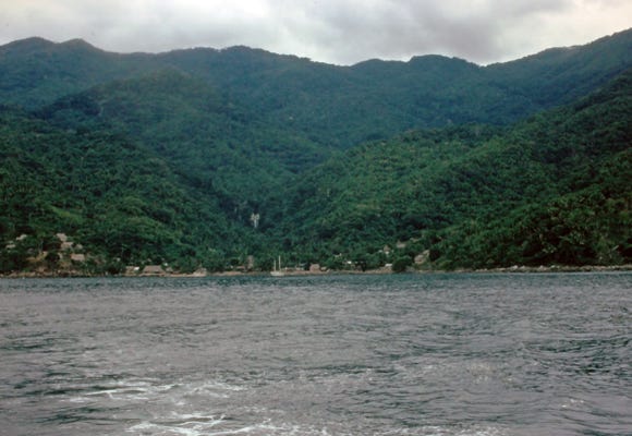 A view from the boat of the large rock formation called Los Arcos De Mismaloya, and photos approaching the bay of Yelapa. The boat was anchored off shore and a skiff took us onto land.