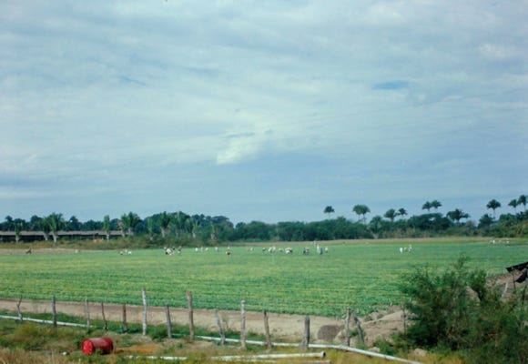 Many photos of the beach at Santa Cruz and on Thanksgiving Day, Nancy cooked up a ham dinner. As we drove the dirt road to go to Puerto Vallarta we passed a family doing laundry in the river and then on the highway we saw locals picking vegetables in a field.