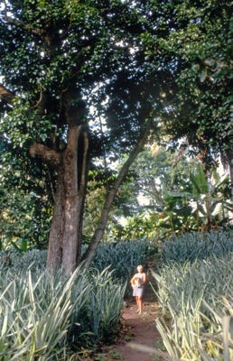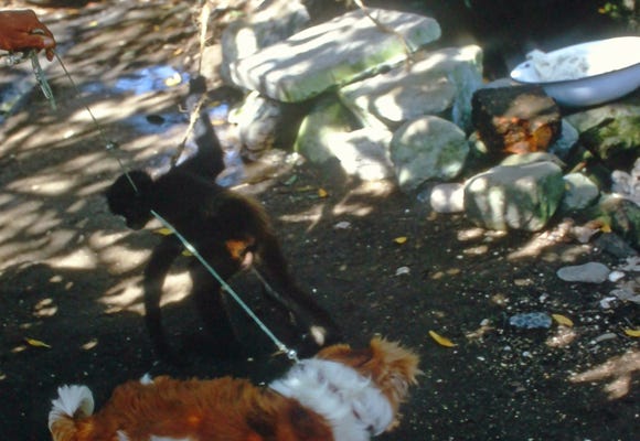 The next day we took the jungle tour to La Tovara National Park, a freshwater spring with mangroves, wetlands, tropical birds, turtles, iguanas, and crocodiles. This was an all-day tour, and we followed the canals to the springs and then back to Matanchen Bay in the Pacific Ocean. Stopping along the way, we walked through a dense plantation of papayas, and Lady came face to face with a tame monkey on a long rope.