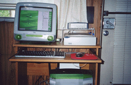 Also, for all of you who use computers, we have a computer desk that fits perfectly in the living room on the right side. As you can see we have an iMac, CD Burner, Scanner, and printer.