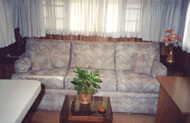 If you read "About Our RV,” you will see that our trailer is set up for full-time RVing. Over the years, we have added many items to make our trailer more comfortable. This is truly a one-of-a-kind unit. We have redone the interior, with new carpeting, sheer curtains along with pleated drapes. The sofa has been redesigned with new cushions and fabric. The sofa can fold down to make a bed, but underneath the main cushion when you lift it up is a large storage compartment that is the full length of the sofa.