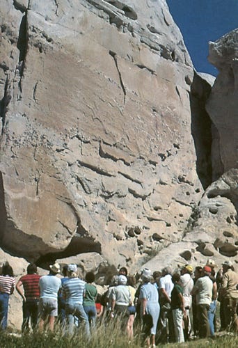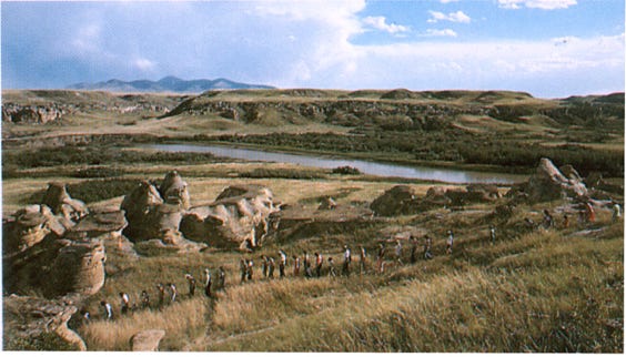 Here, we are at “Writing-On-Stone Provincial Park," established in 1957 to protect the fragile paintings and carvings (pictographs and petroglyphs) in this North American’s largest concentration of rock art near Milk River. A guided tour through the park shows visitors the carvings and “Hoodoos.”