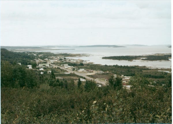 Bay of Islands, Newfoundland. Lark Harbour, as seen from Blow Me Down Provincial Park on Highway 450 near Corner Brook and the Trans-Canada Highway.