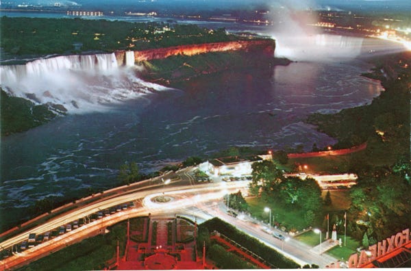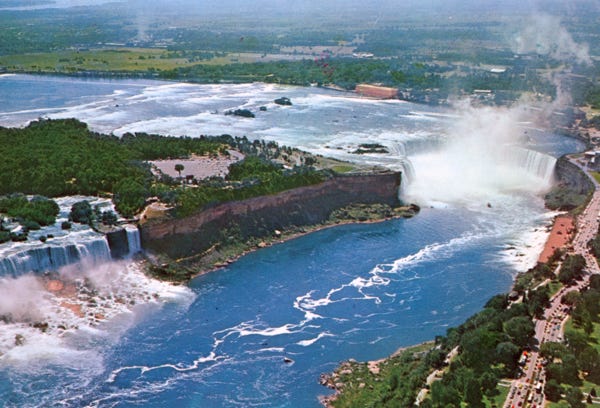 While it is hard to get an overview of Niagara Falls, here are a couple of postcards showing the overall size of the area.