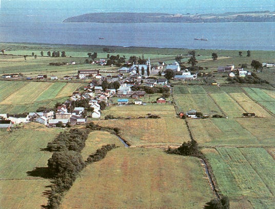 The scenic upland and shore bear a striking resemblance to the coastal regions of Scotland. A fishing village of Cheticamp along the Cabot Trail.