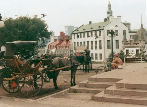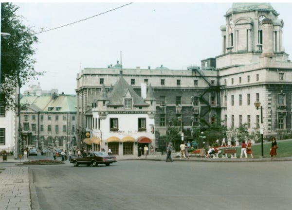 The above is a postcard of an aerial view of Quebec City in the winter and several photos of downtown Quebec. Bill and Nancy went to an outside cafe for lunch, and we felt like we were in Paris.