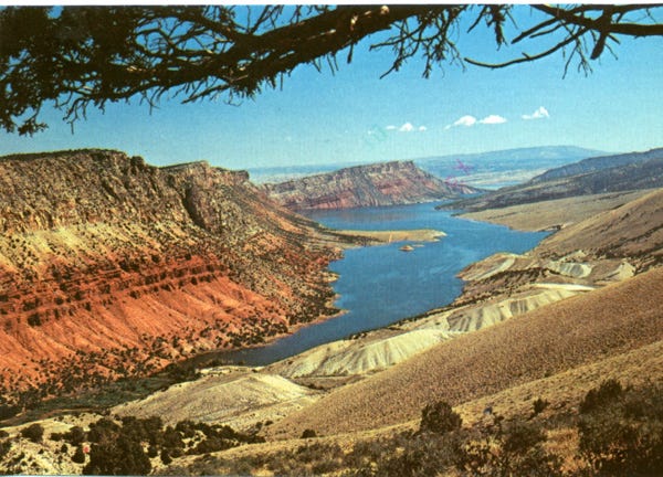 Flaming Gorge Reservoir is the largest reservoir in Wyoming, and is partially in northeastern Utah. We stayed at Buckboard Campground for several weeks fishing for trout and bass and drove around the area exploring the sites.