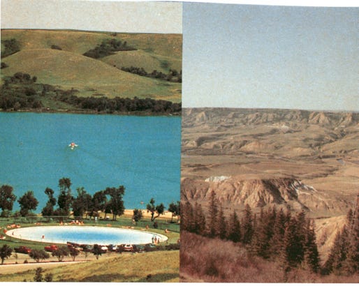 Now in Saskatchewan, Canada, and the Buffalo Pound Provincial Park and Saskatchewan Badlands. A view of farmlands in Saskatchewan.