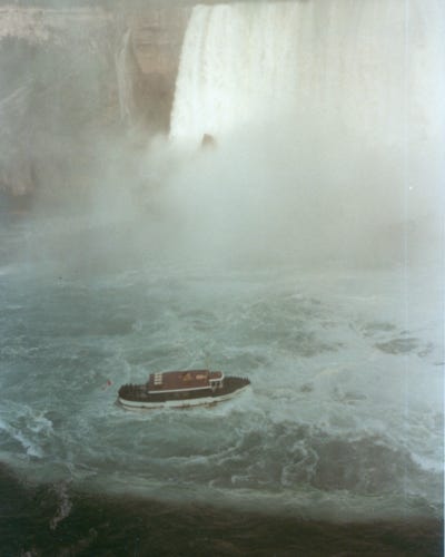From the Skylon Tower a view of Horseshoe Falls, where we had a nice lunch taking in the views of just a special place. The Skylon Tower is 520 feet tall and was constructed in 1964 for a cost of 7 million dollars at that time. After lunch, we boarded the “Maid of the Mist,” boat tour and saw the American and Bridal Veil Falls.