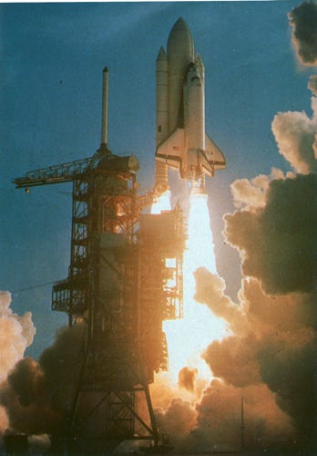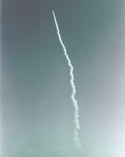 10:00 AM, the time of the launch. A postcard of how a launch would look of the shuttle. The final photos of the launch of Columbia as we watch it go into space.