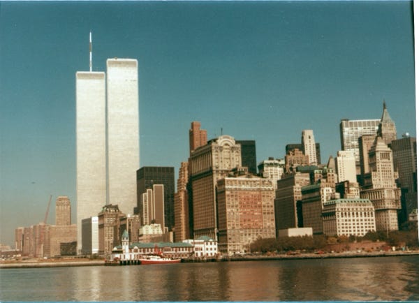 From the viewing platform, we took photos of the Brooklyn and Manhattan Bridges, a view of the Empire State Building and downtown, and another view of the Statue of Liberty in the Harbor. A spectacular view of the Twin Towers glistening with the sun on them from the boat tour we took to see the Statue of Liberty.