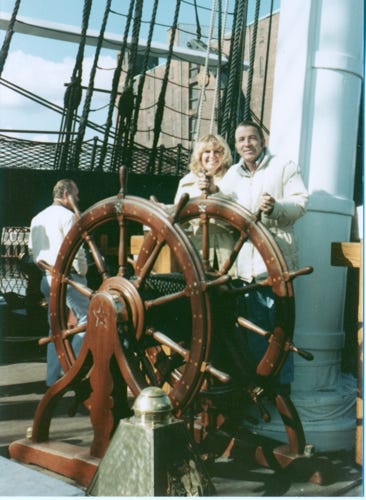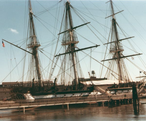 Launched in 1797 and fought in the War of 1812. She was victorious in all of her battles; her last service was in 1881. Bill and Nancy are behind the wheel of the ship.
