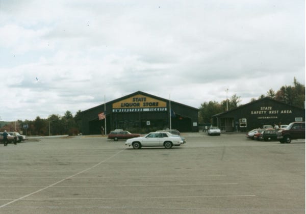 We are on Highway 91 a beautifully divided highway, we approach a rest area and a liquor store next to each other in New Hampshire.