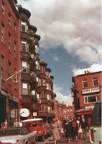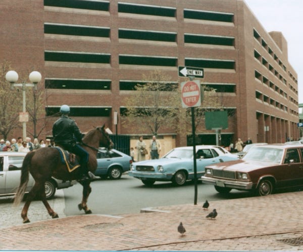 As we walk around the area there is so much to see, here is a photo of Paul Revere’s house; the oldest frame house in Boston built in 1770. Downtown Boston and Nancy is sitting next to the mayor of Boston James Michael Curley. A policeman on his horse in downtown.