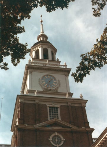 The next day we drove downtown and toured the area. When Bill and Nancy took their trip, the Liberty Bell was in a glass pavilion across Chestnut Street from Independence Hall. Nancy was able to touch the “Liberty Bell,” because they only had a small area roped off. In 2003 the Liberty Bell was moved to Liberty Bell Center, which has an interpretive exhibit and a large window that allows visitors to see it against the backdrop of its old home, Independence Hall.