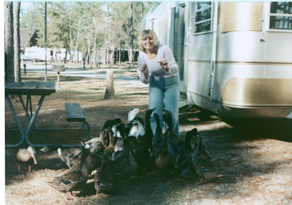 As we continued going back to the East Coast we stopped at another KOA in Atlanta, Georgia, and Nancy was feeding the ducks. Driving and exploring Georgia, a photo of one of the 24 squares (city parks) in downtown Savannah. A photo of Isle of Hope near Savannah, on the Skidaway River.