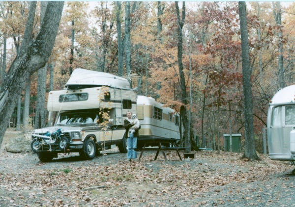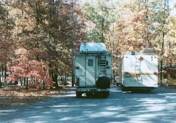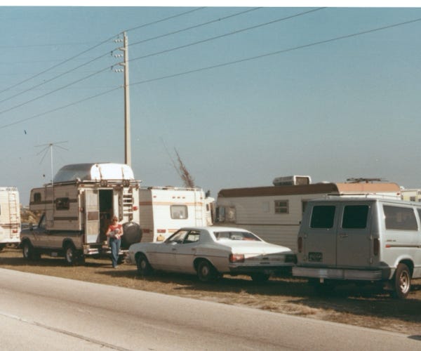 After the tour, we drove to Titusville and camped along the highway along with many other people and spent the night. Nancy and me having a great time in the camper.