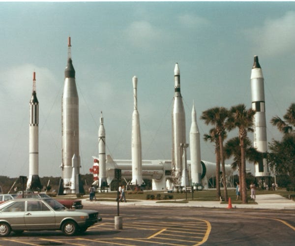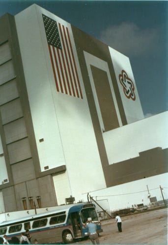A photo of the rocket assembly building, and the world’s most powerful rocket “The Saturn.”
