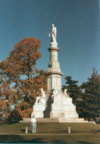 Next, you will see the 60-foot-high Soldiers National Monument where the first cornerstone of the monument was laid on July 4, 1865, and it was finished and dedicated on July 1, 1869. On November 19, 1863, President Lincoln delivered the Gettysburg Address.