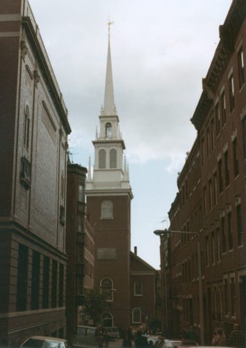 A beautiful statue of Paul Revere graces a small park in front of the Old North Church.